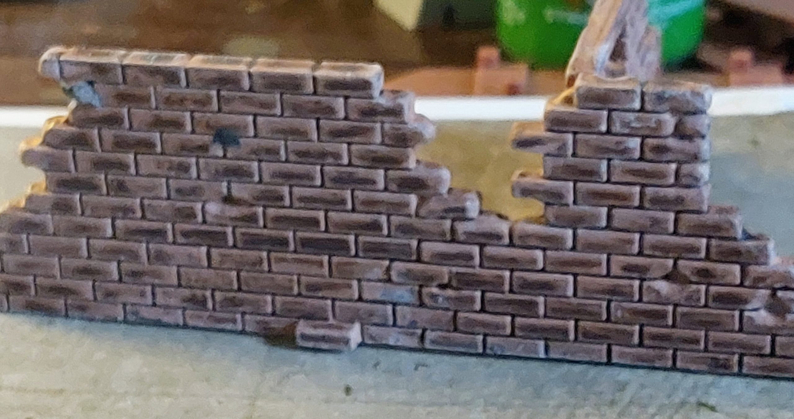 There was one upside to the above effort in that it put a surface on the smooth resin which allowed the wash to pool in places darkening some of brickwork quite realistically.