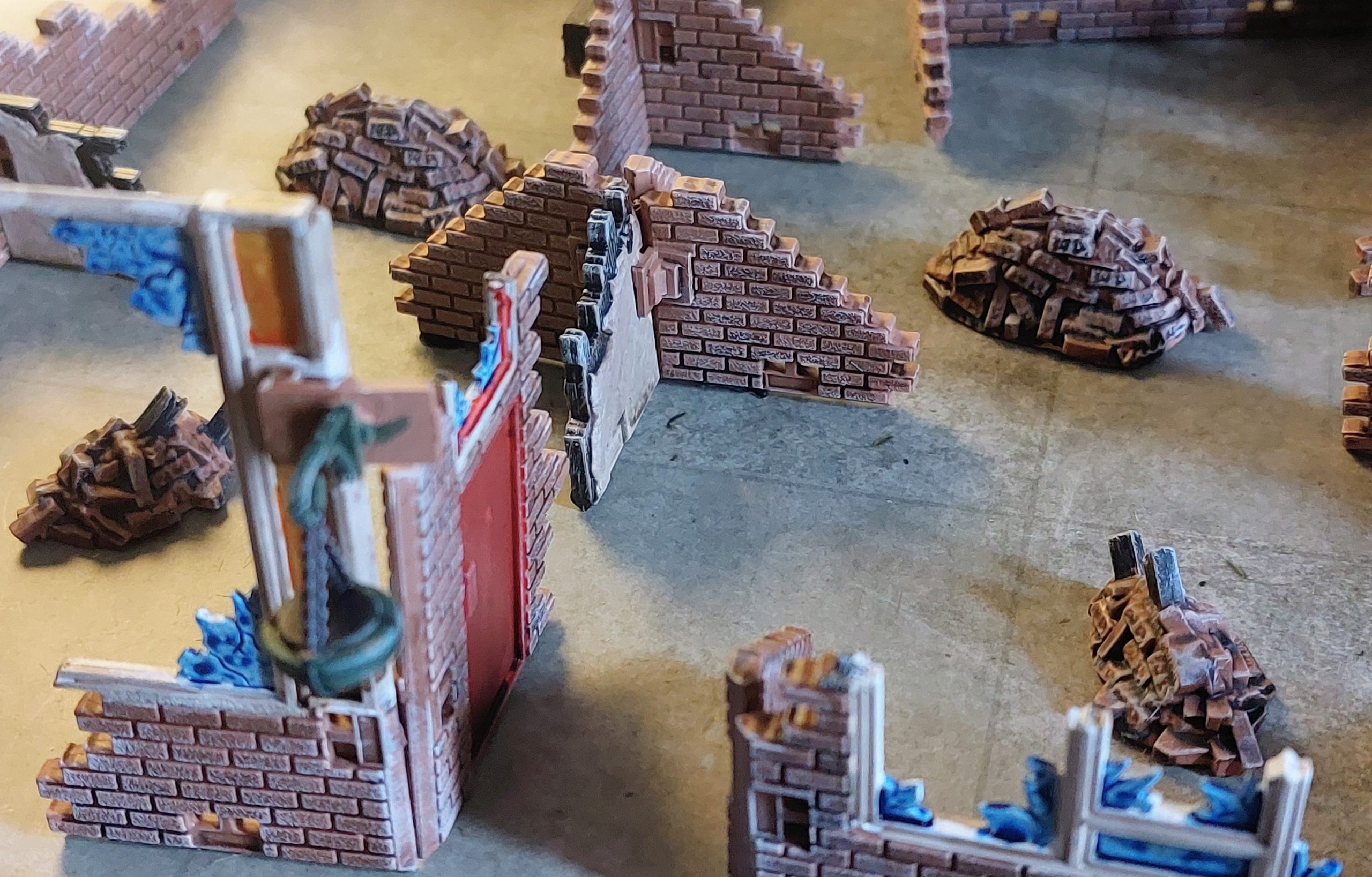 I just used wash on the Mantic walls as the plastic had a rougher surface than on the spec Ops resin. Most of these though had other features to draw the eye.