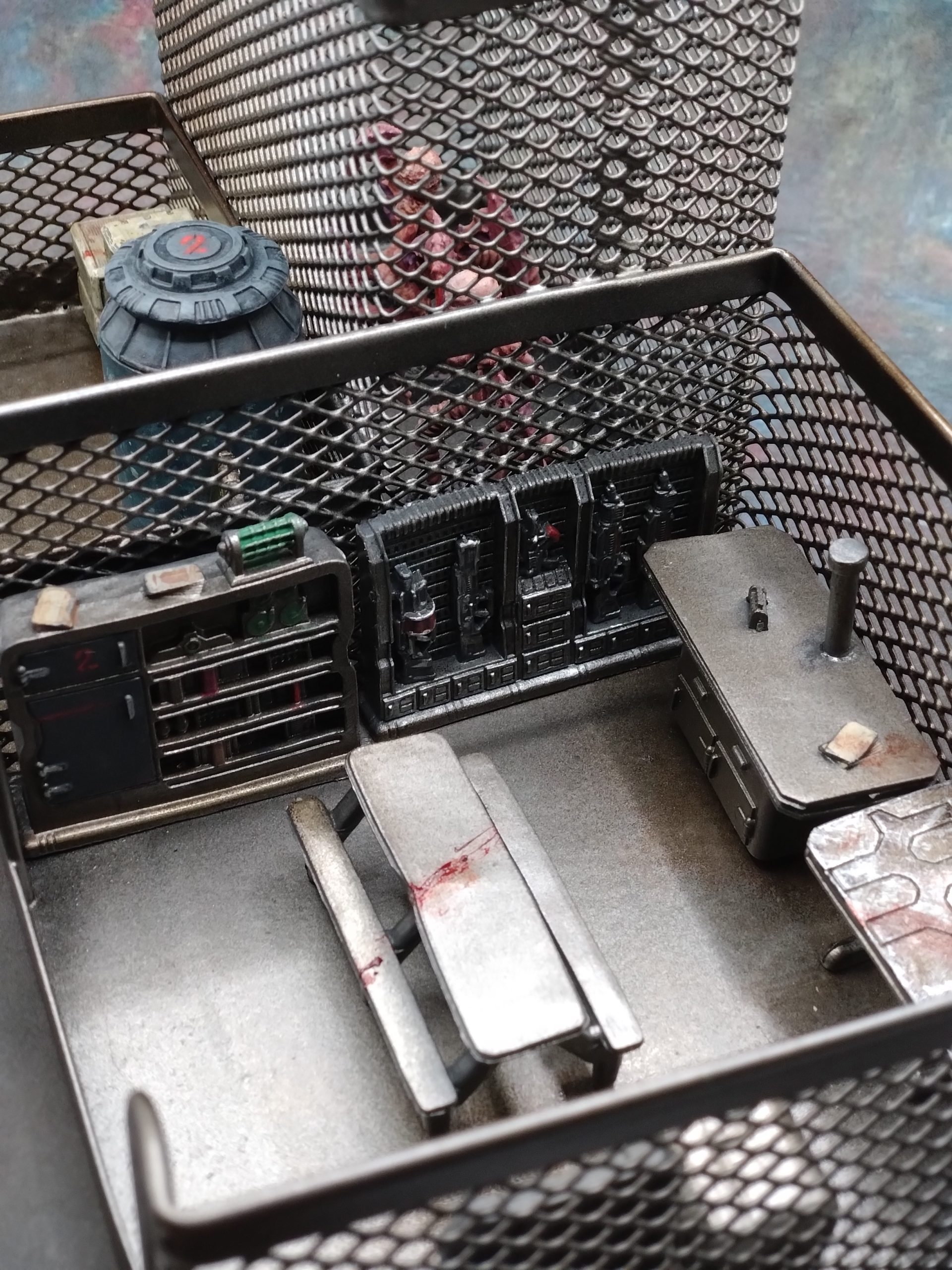 Down the treasure trove of the Lidl middle aisles to find fun terrain ideas. Realised that there was potential for this to be a caged off / cargo area in a sci-fi setting.