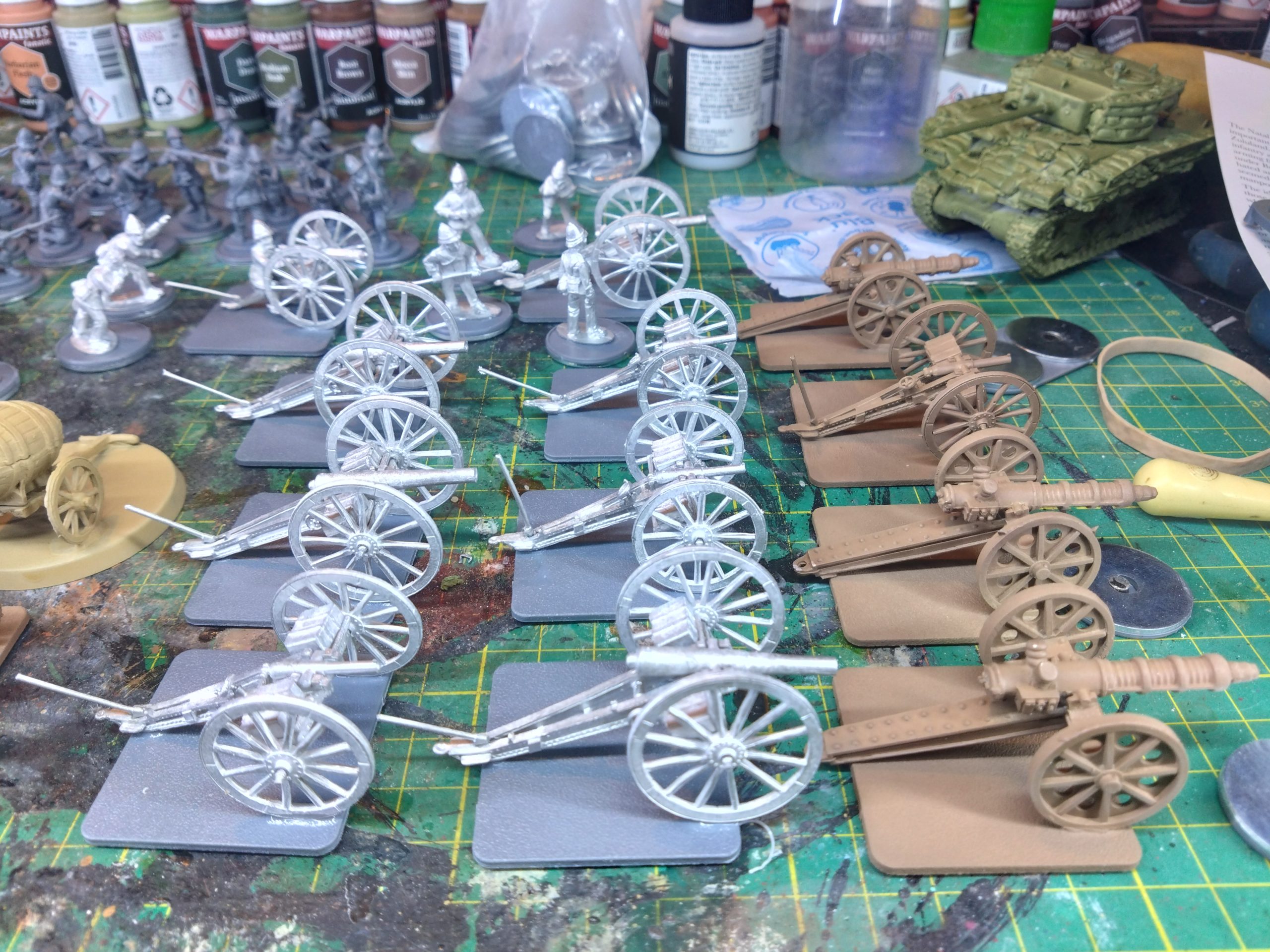 Next up I started on the British Artillery. I also have some electric cannons from Ironclad. I may end up sourcing some Austro-Hungarian or Prussian artillery crew and giving them to the Malverians