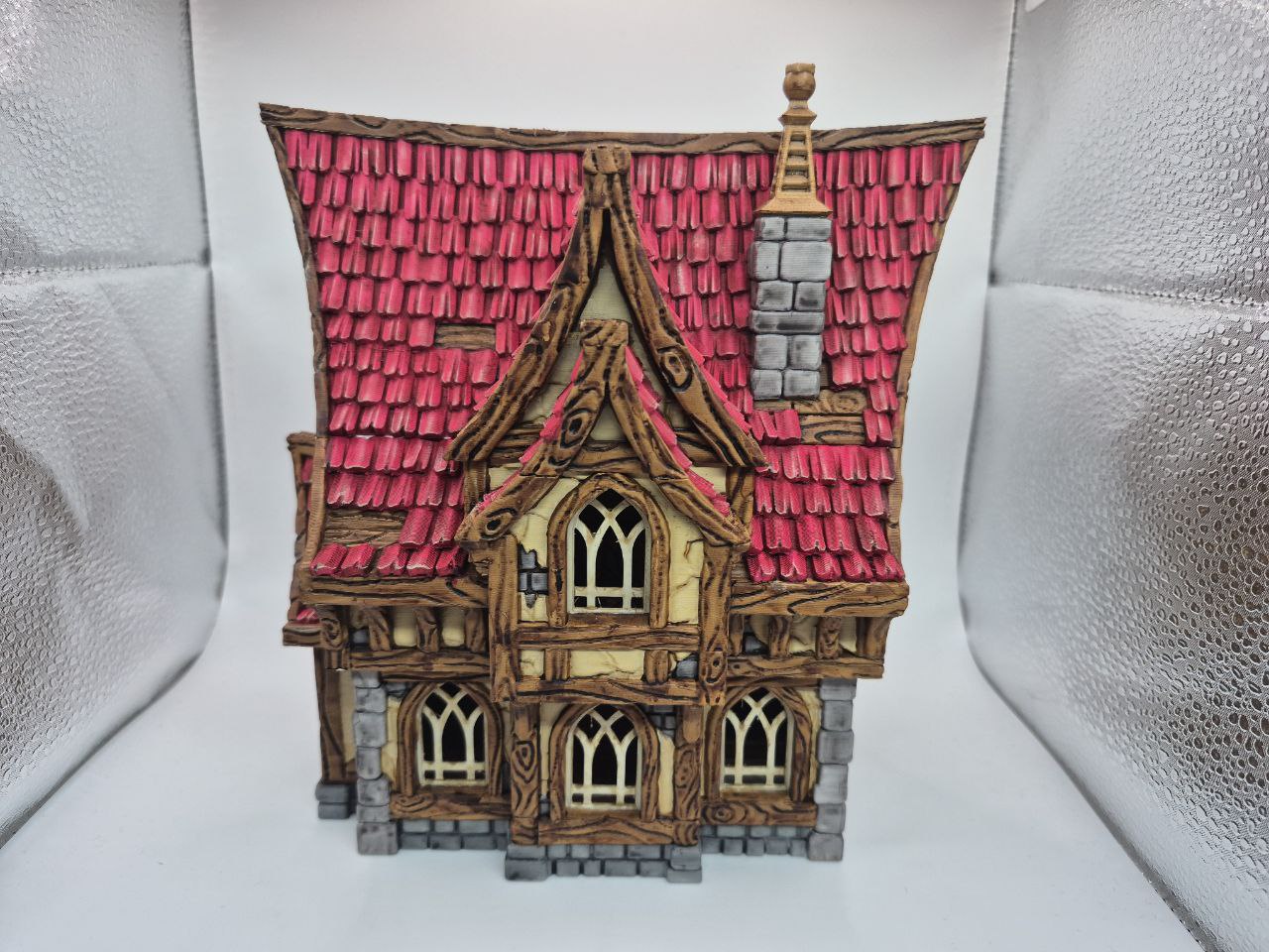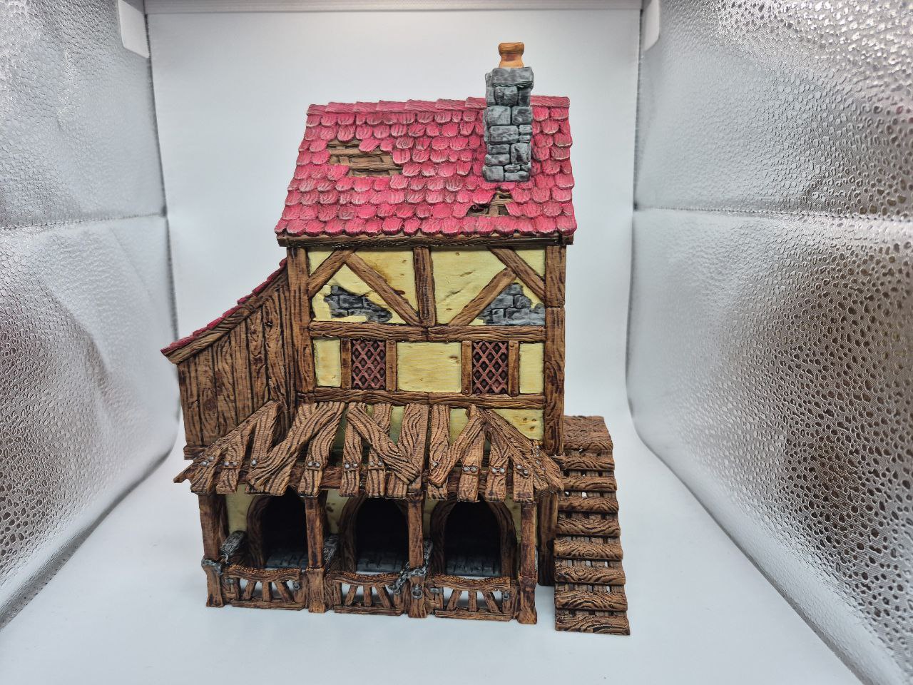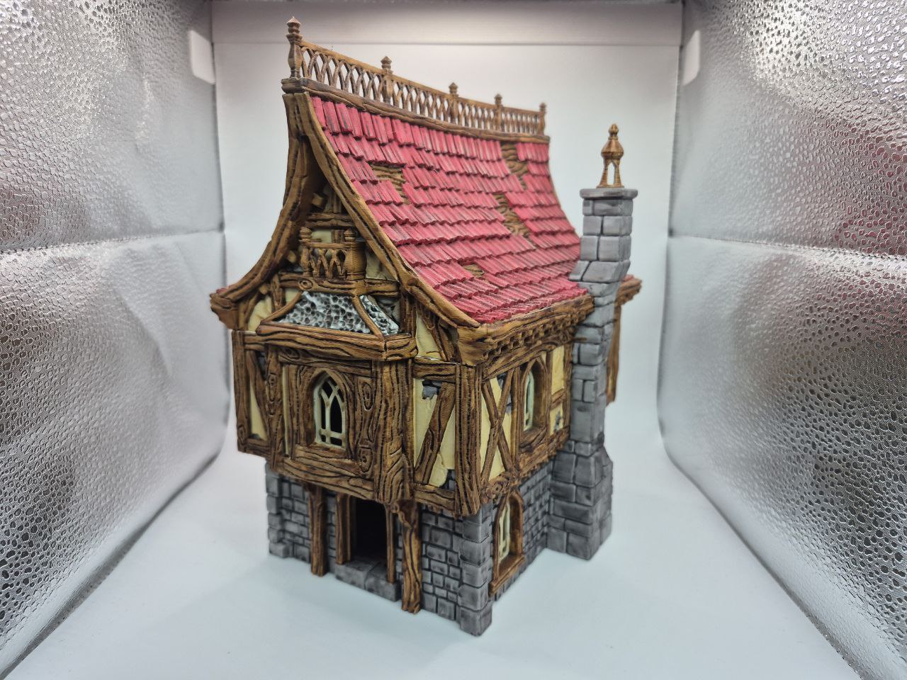 The building are 3D printed and all of the major buildings, except for the stables are made by Antigone Miniatures: