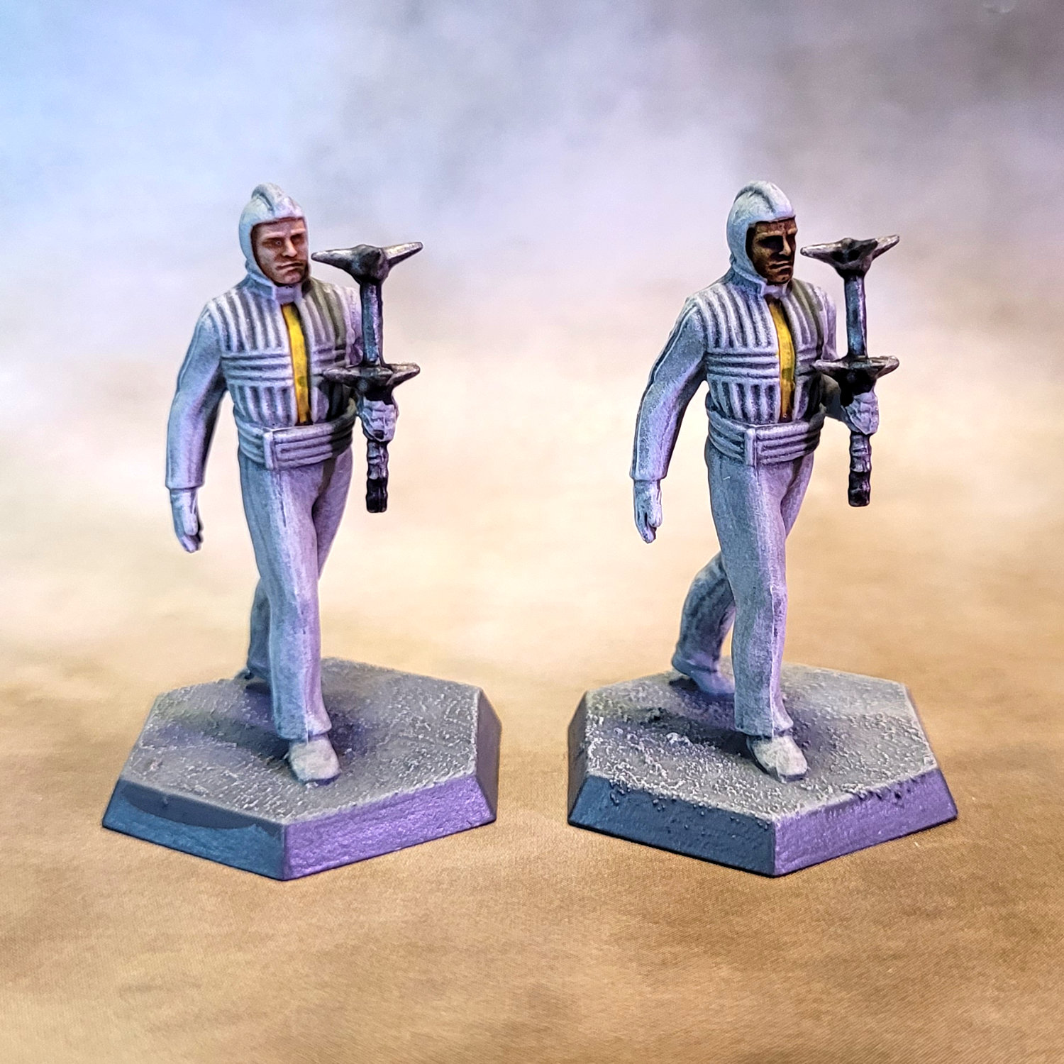 I got all the player character miniatures painted in time for our first game session. I also finished 3 additional primitive humans, and one extra astro-naut (just in case whoever plays that character wants to gender-swap).