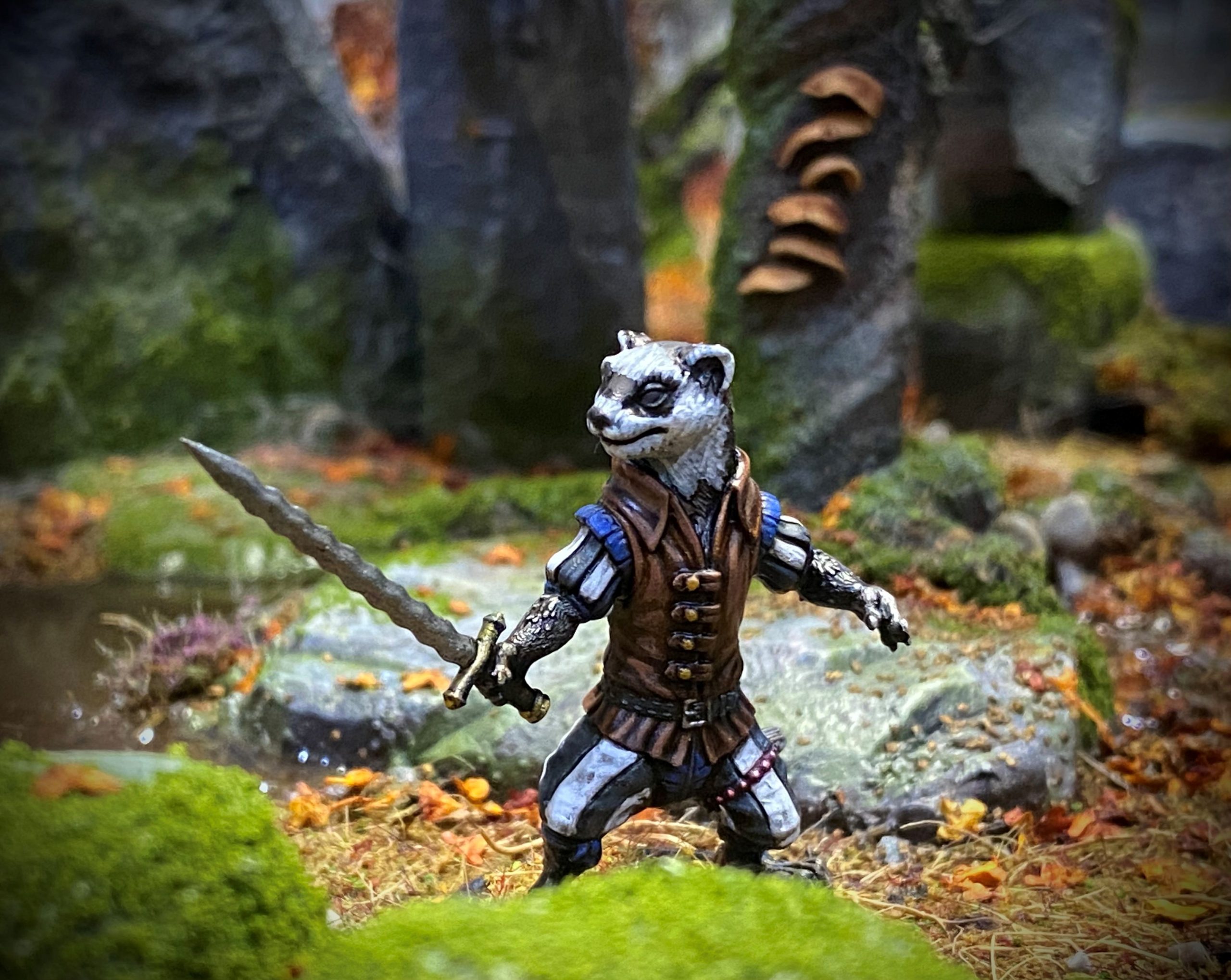 Maximiliano is a Ferret who is armed with a one-handed sword and wears light armour, thanks to a recent trip to the market with Maverick.