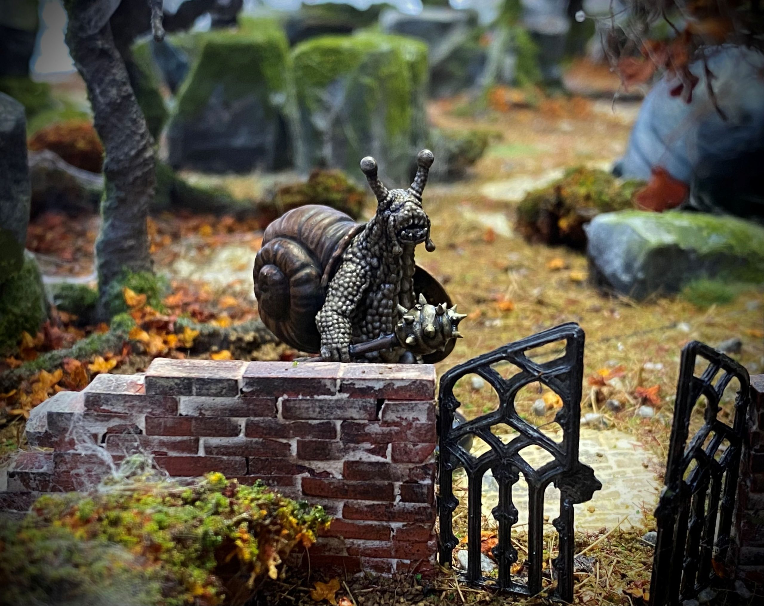 Thomas is a Snail (using the Tortoise profile) who is armed with a one-handed mace and a heavy shield, a relic from one of his ancestors.