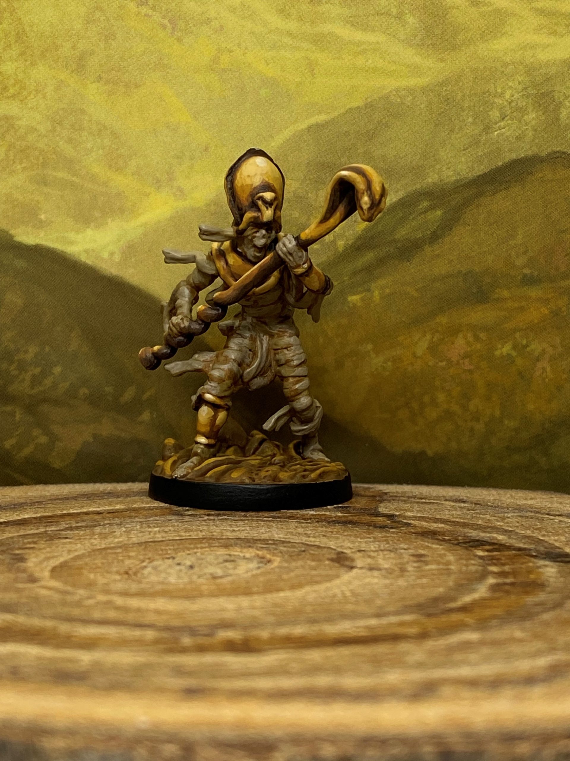 The Mummy’s bandages where XV-88, highlighted with Tallarn Sand followed by Karak Stone.
