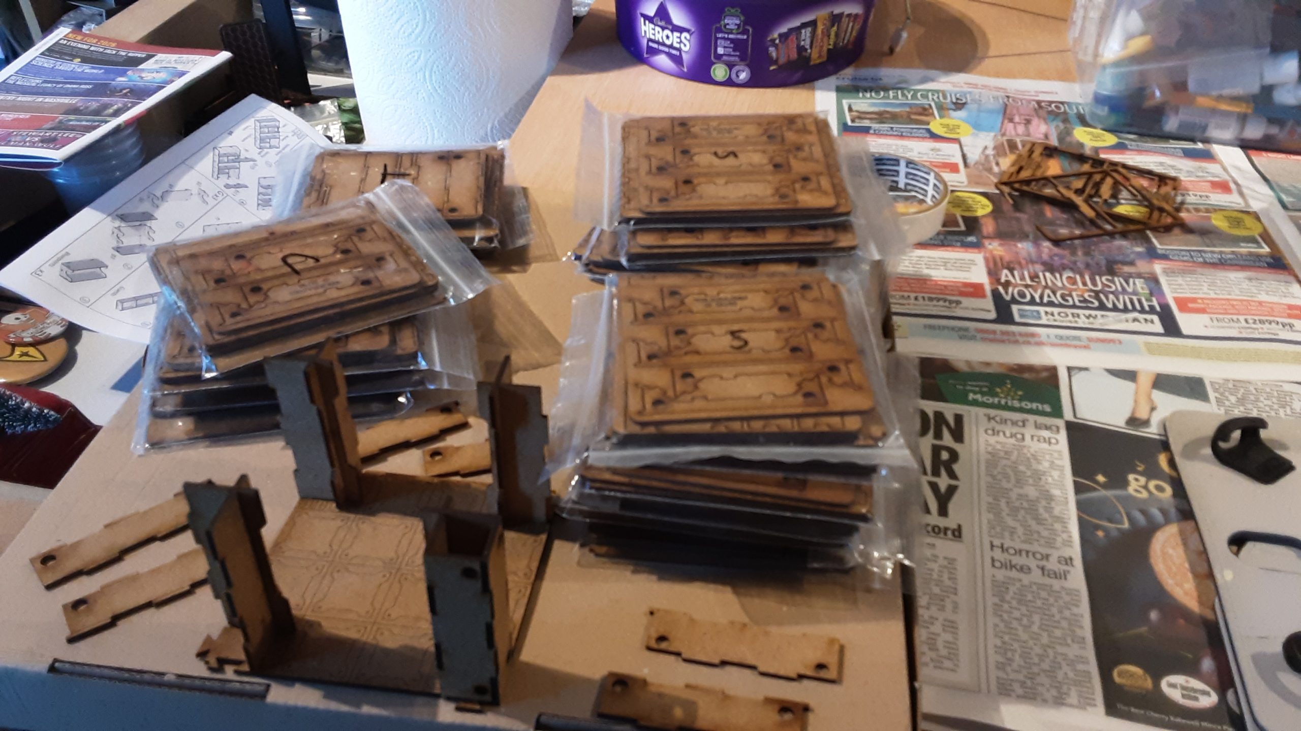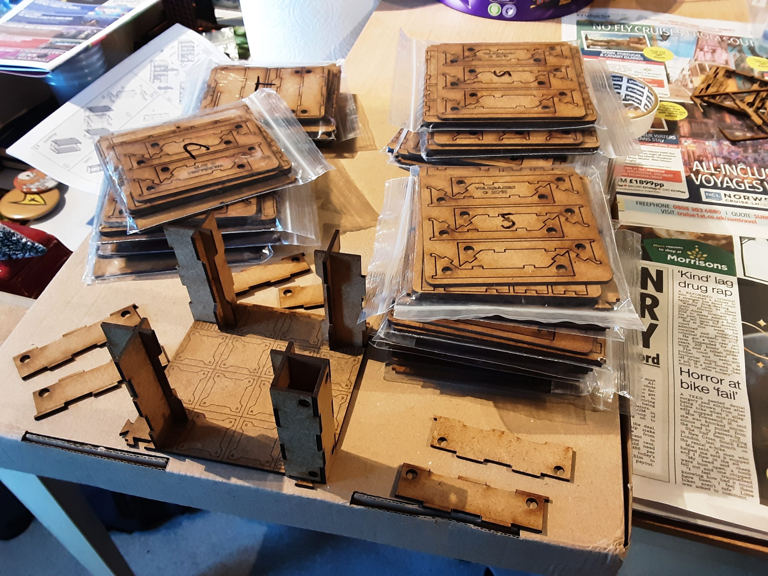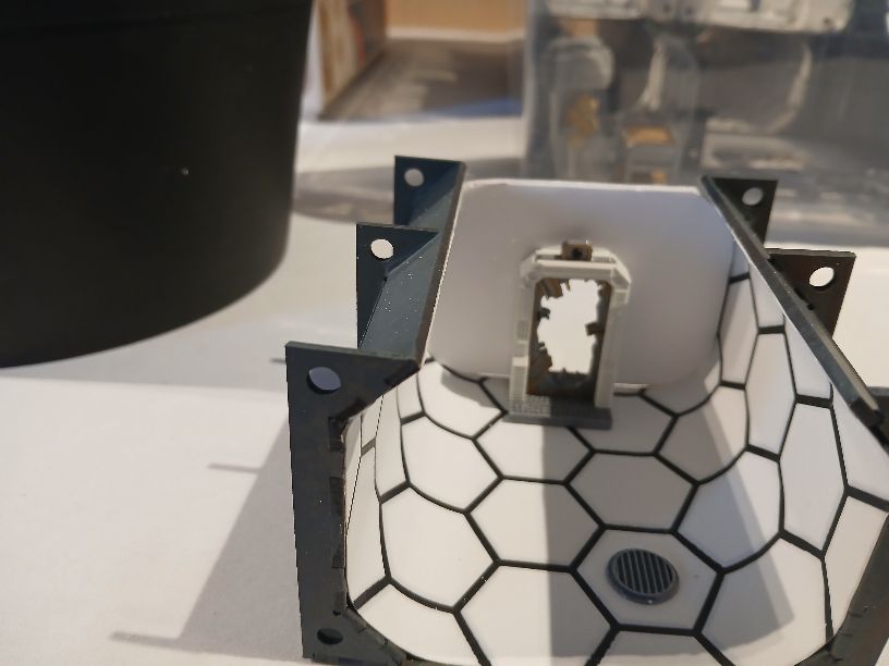 Purchased some items from Warbases for use with games such as Alien RPG, Five Parsecs from Home, Stargrave etc. I added the hex pattern by using hex pattern wallpaper available from B&Q, along with 3D printed items like air duct entrances on the walls and floors. The doors / tunnel blockers were made from 6mm foam core board with the holes cut out for the removable doorways, and the foam core glued to the door bases