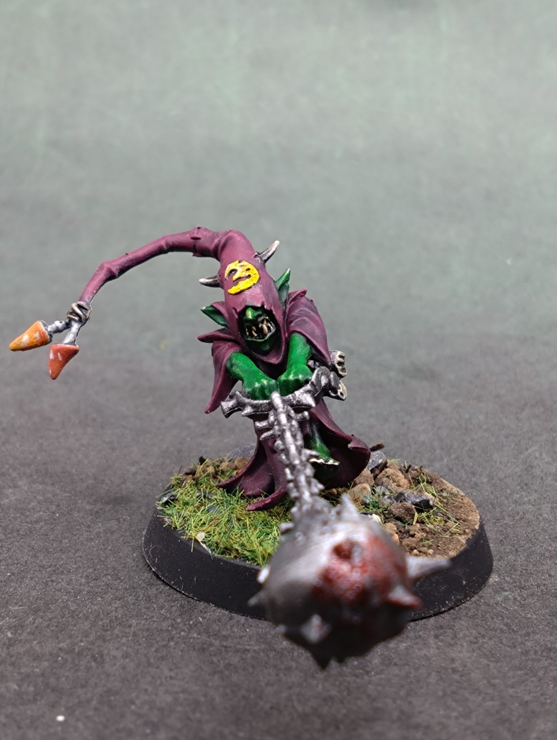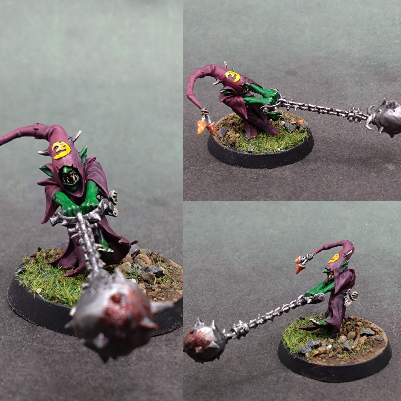 My pace has slowed up. Have had a head cold bob up and down in ferocity over a week now. It’s killing my energy and focus. Painting a Nurgle figure seemed appropriate.
