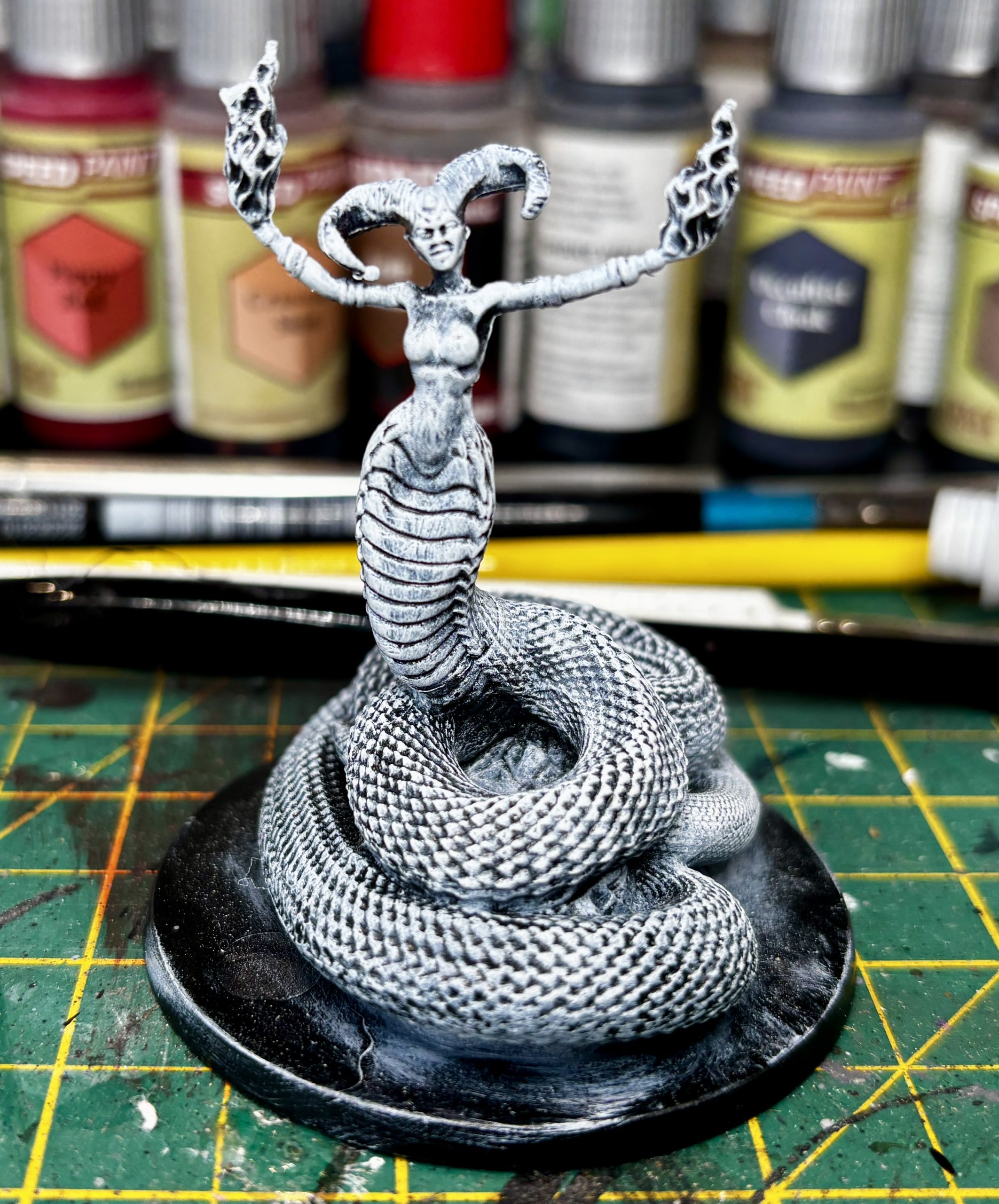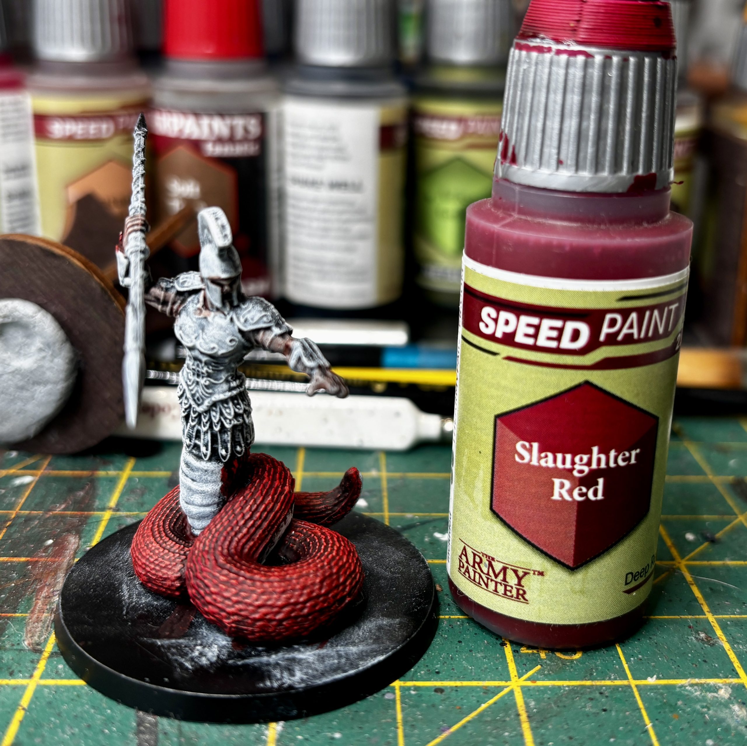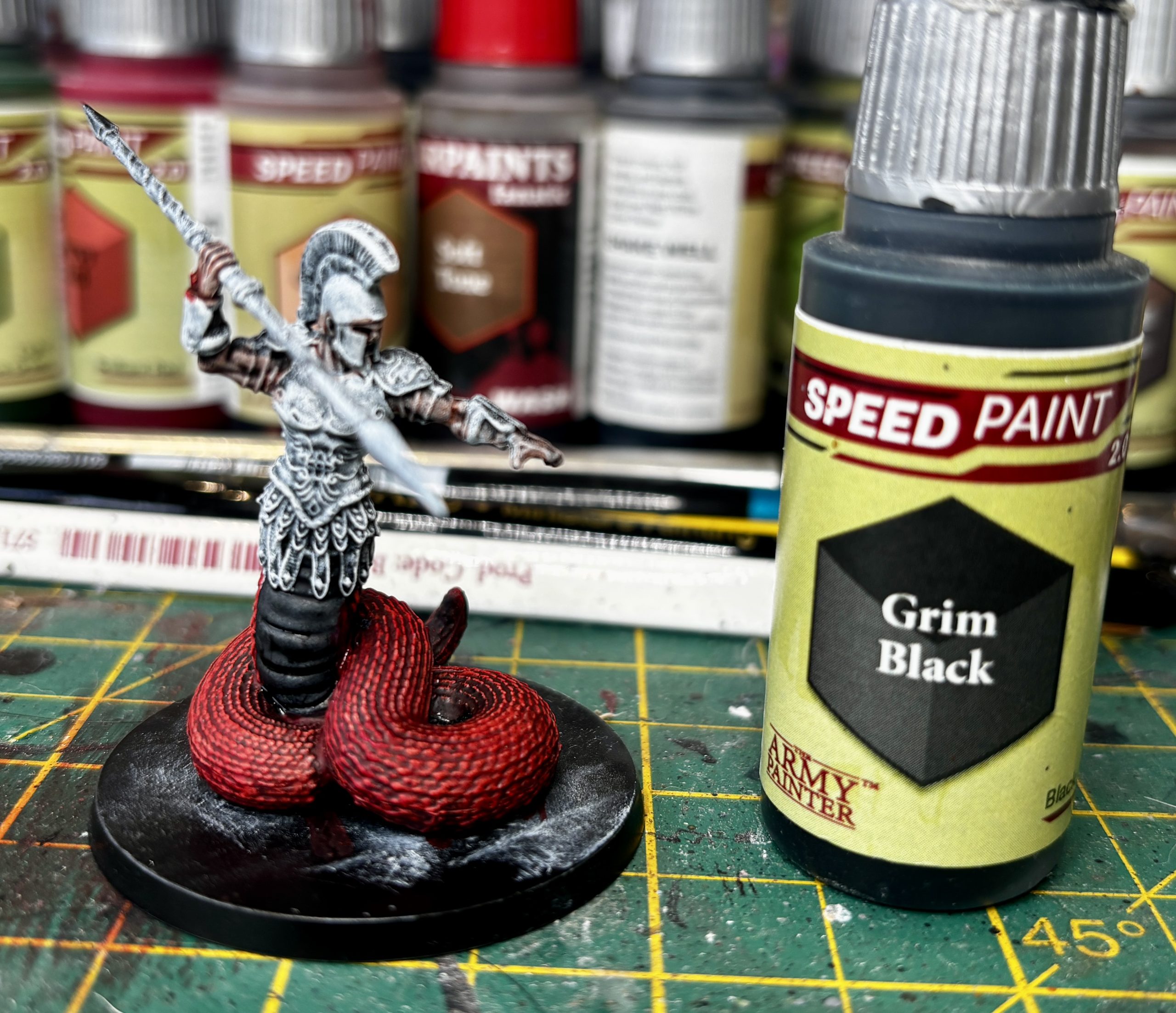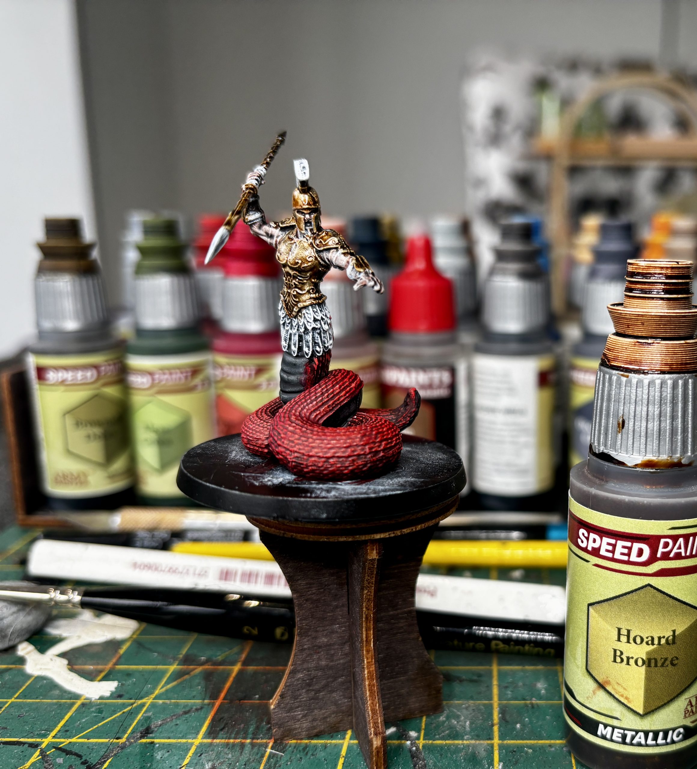 The other night I dusted off and played one of my favourite board games, Mythic Battles Pantheon. It always struck me as the perfect project for speedpaints and i’d promised myself I’d get it painted when Speedpaints were announced. It’s taken a while but after playing it again recently and currently agonising over which Kings Of War to dive into I thought it might be a fun little project to get me painting again after the Christmas break. Couple of rules for this one as I want to get it tabletop ready as quick as possible so slapchop undercoating (cue hookers, tongues and teeth), block colours, minimal washing and NO BRAINMATTER BIEGE! Controversial I know but speed is key here!