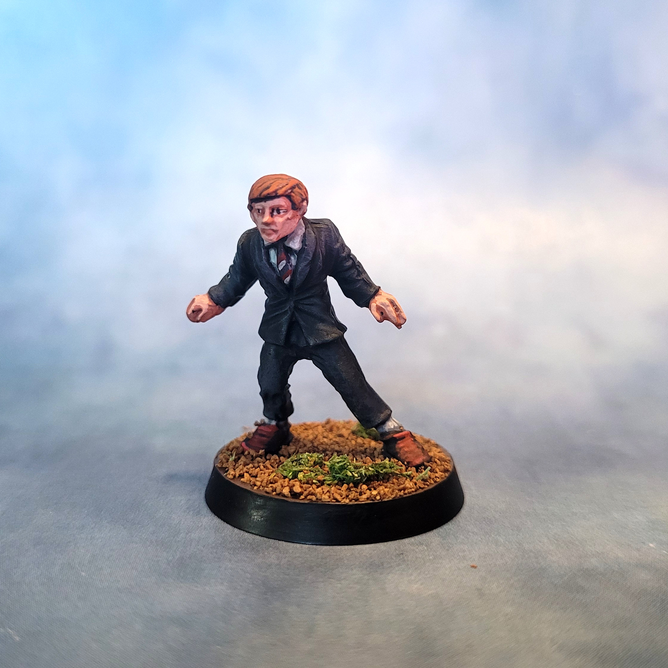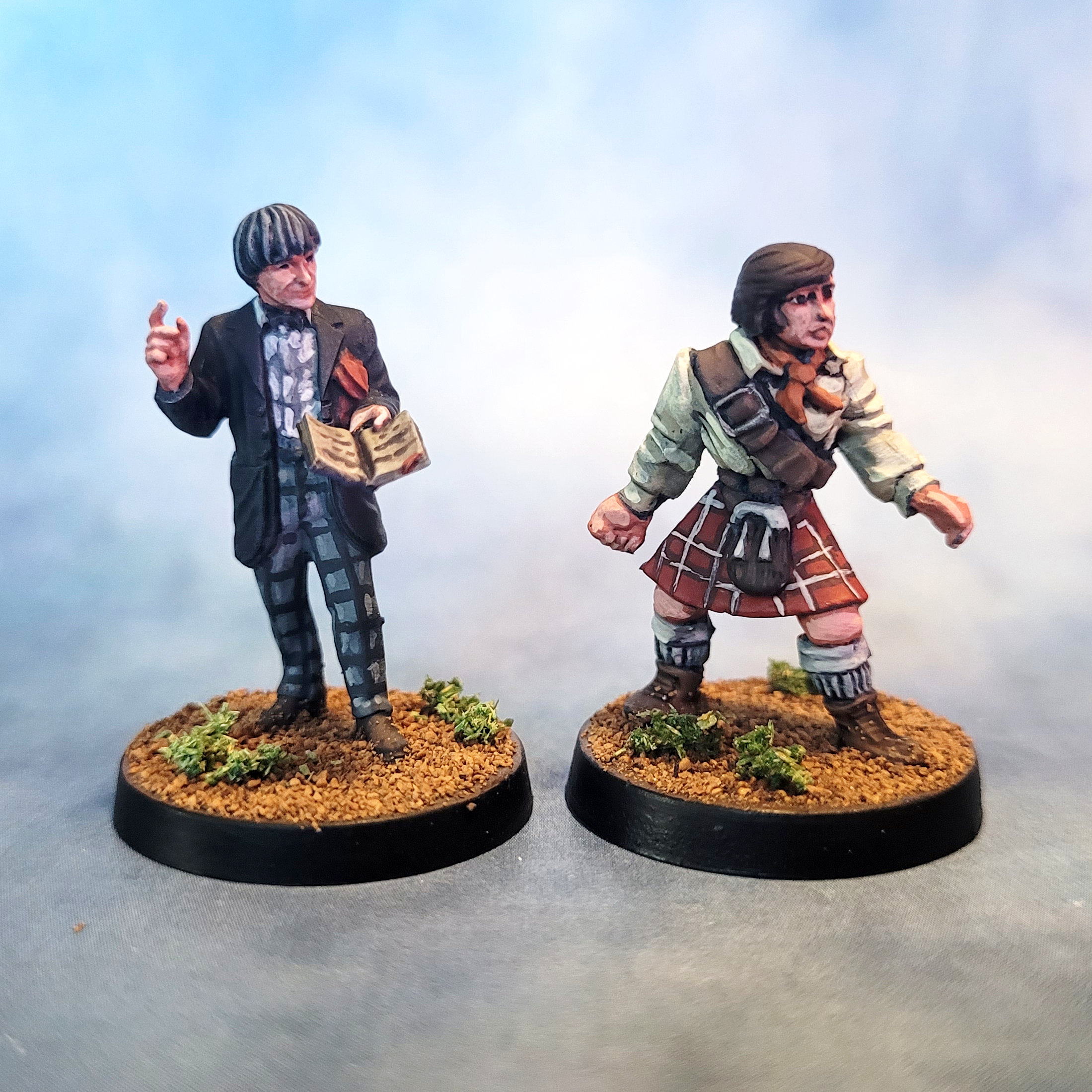 That is more plaid than I ever wanted to paint. The Second Doctor is from Crooked Dice’s Temporal Travelers range, while Jamie is an original Harlequin model. You can definitely see a difference in the sculpting style, but the scale is more-or-less the same and I think they’ll play well together.