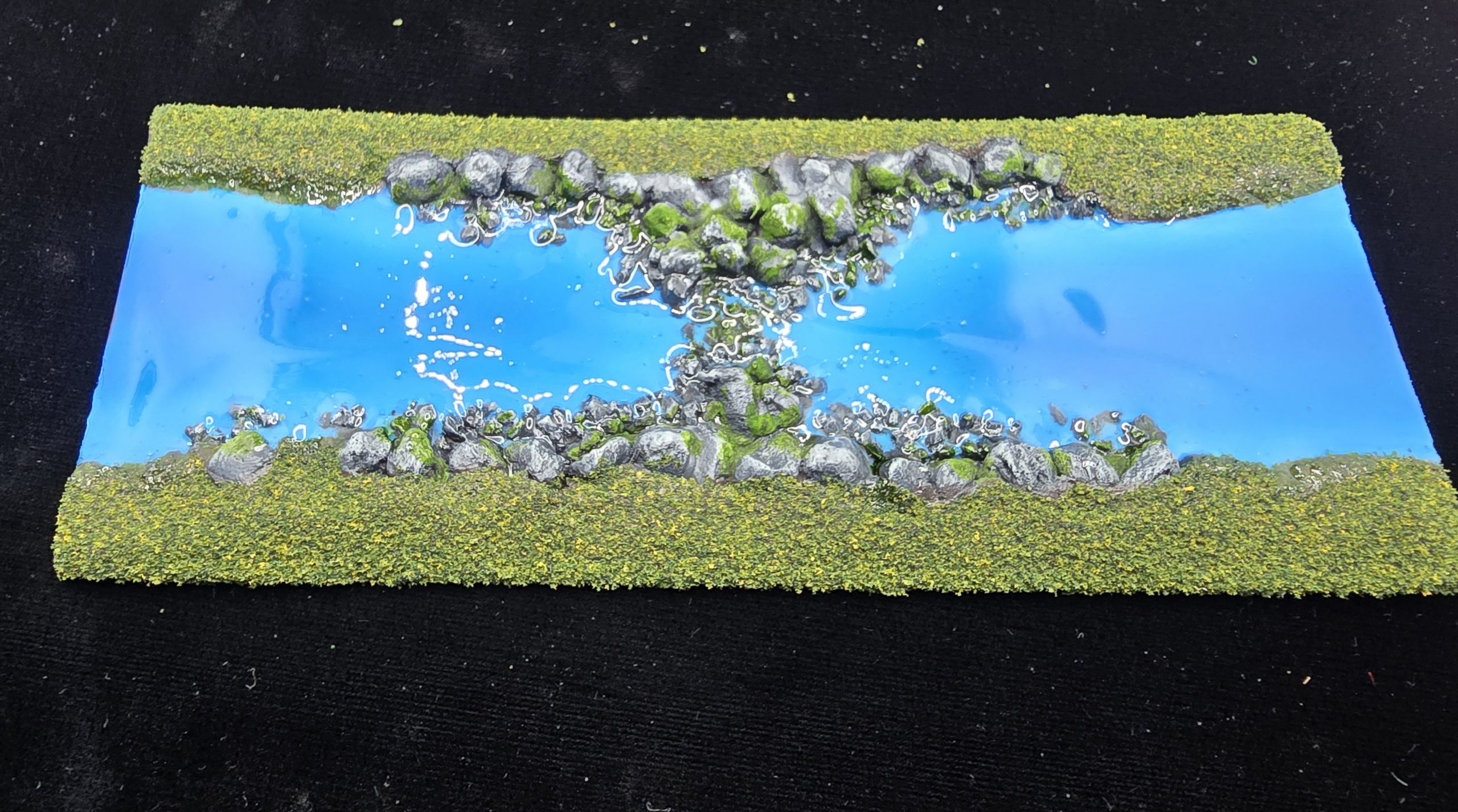 Once that was all done, sprayed Sceneic cement, flock and then sealed it. Varnished the river with gloss varnish, and then poured over UV resin once the varnish hardened.