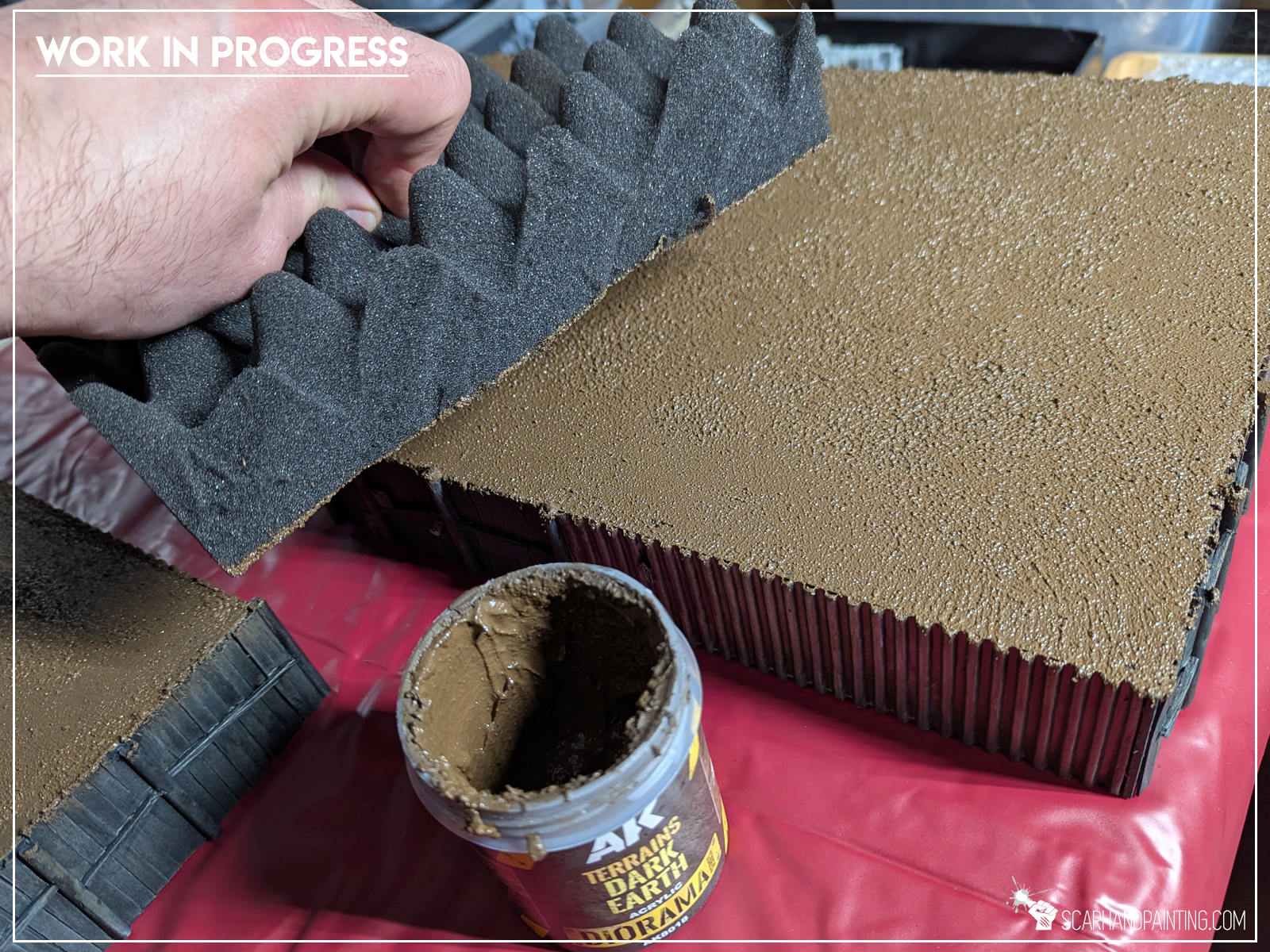 With the scenery set tested in battle it had undergone the standard painting process. You can see the whole Color Recipe for the board here: