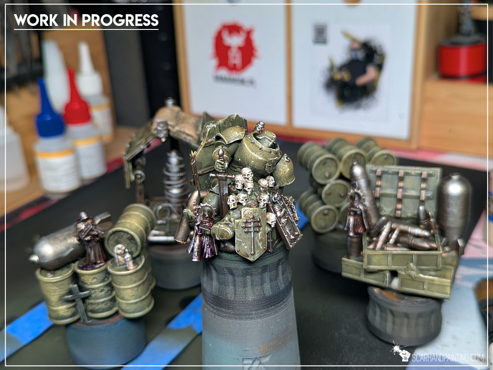 I also added a few extra details mounted in some of the walls. Small ammo cashes, a dead set of Mechanized Hevy Armour, Artillery Shrines etc…