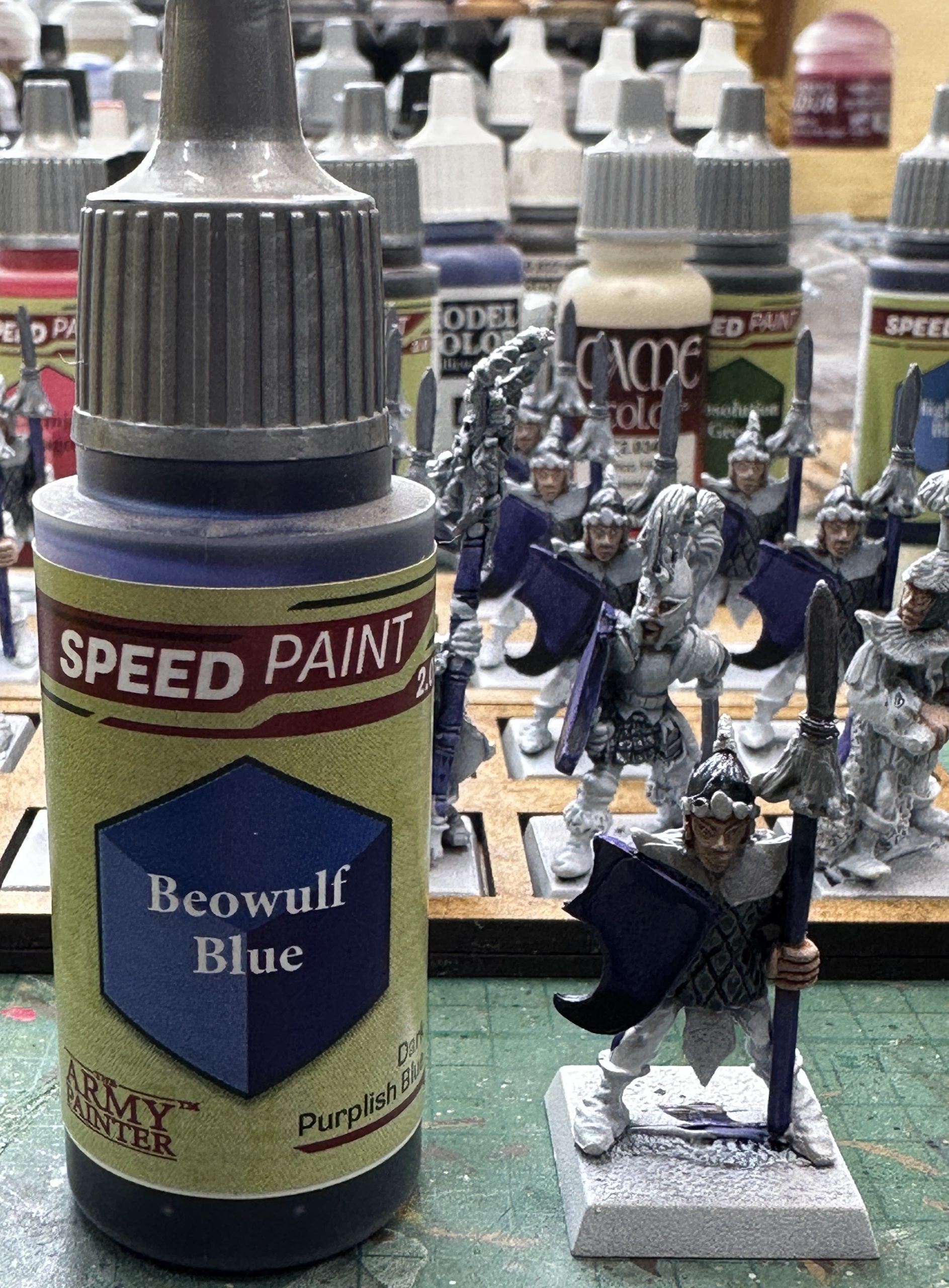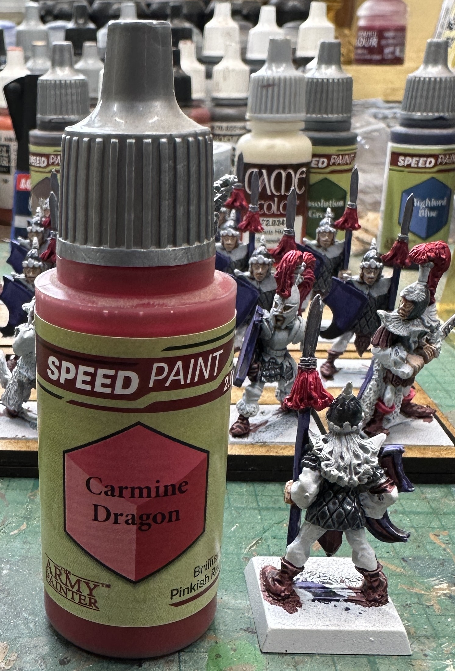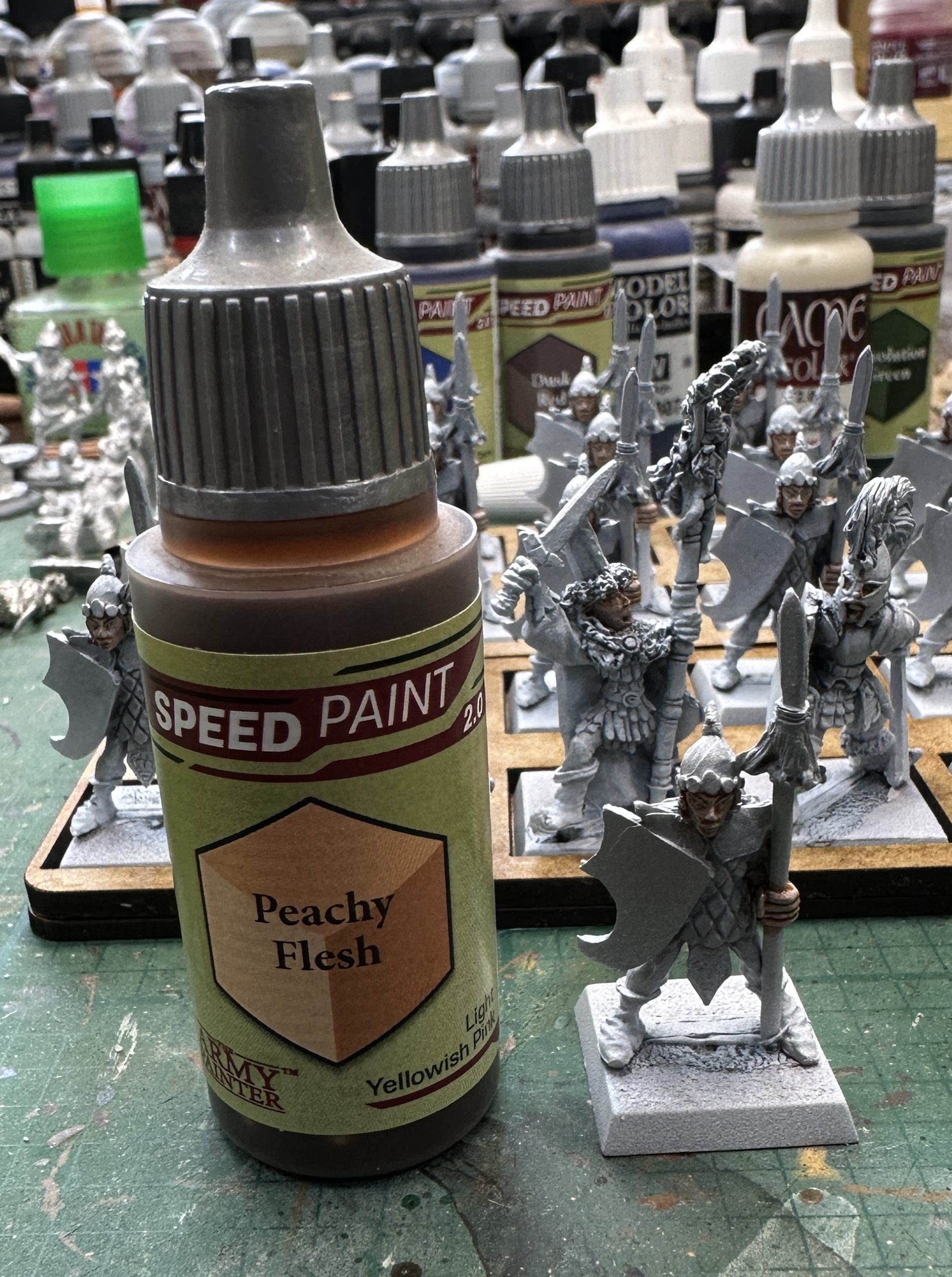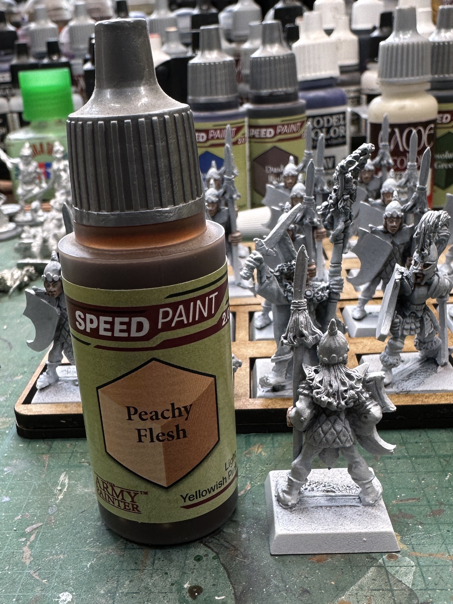 Spent today basing and then priming ten units and 4/6 heroes. They will need all day tomorrow to dry properly. Working with Speedpaints it is necessary to have a well set primer. If you work on the undercoat too soon you risk it coming off as Speedpaints are much ‘wetter’ than a standard acrylic.
