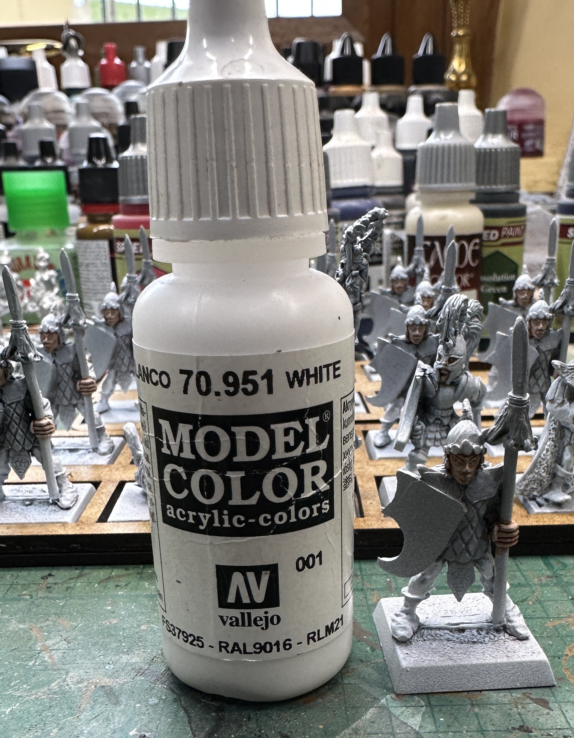 - White bits base coated with Holy White and the white colour reestablished with Vallejo white acrylic.