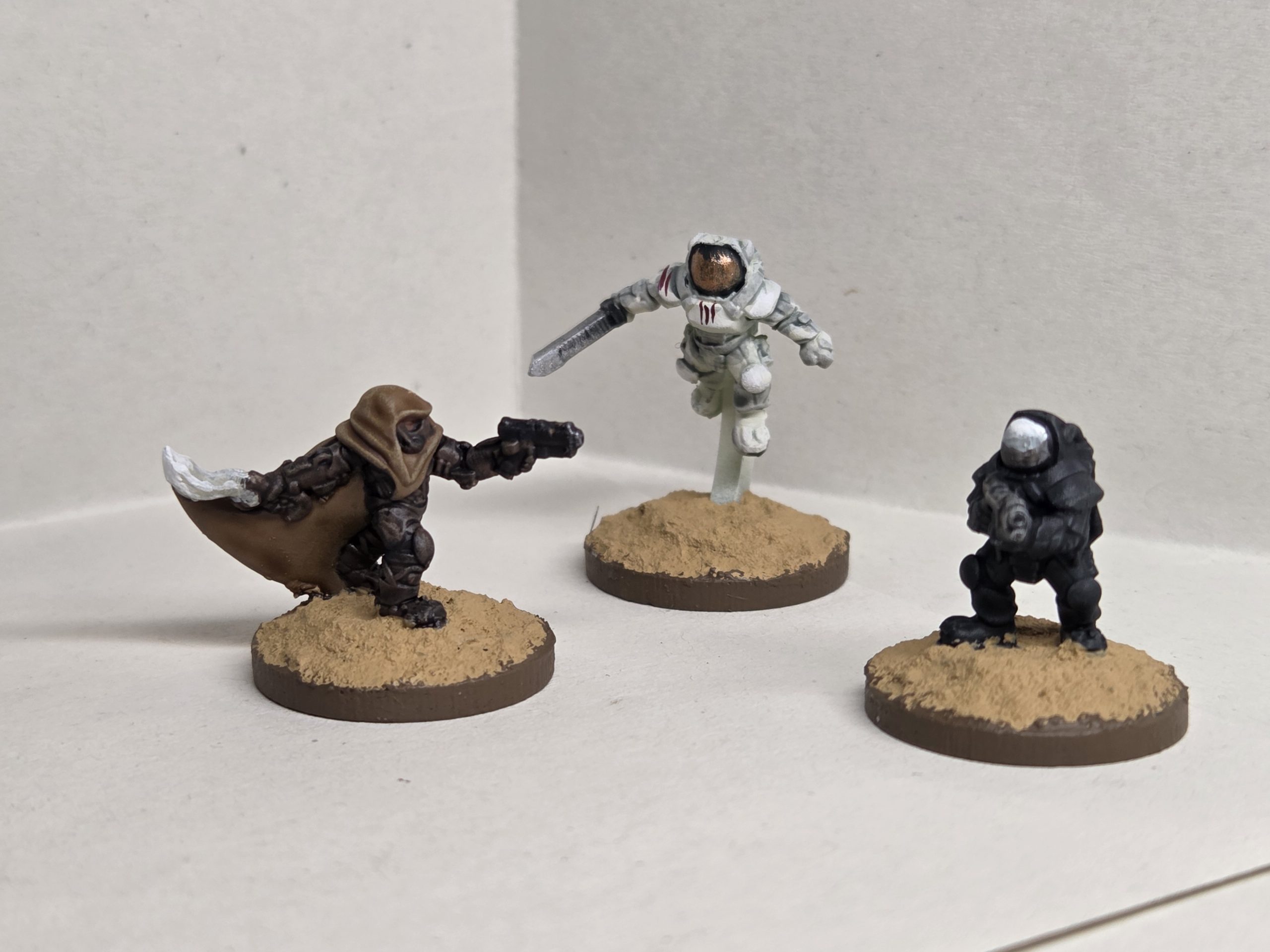 Mounted on 1p size bases, mostly zenithal highlights and slapchop but works for the theme. Some of these could probably be used with the Dune 2D20 RPG system too? 15mm is a very nice scale for this, just enough to get detail but small enough to do coffee table skirmishs with ease